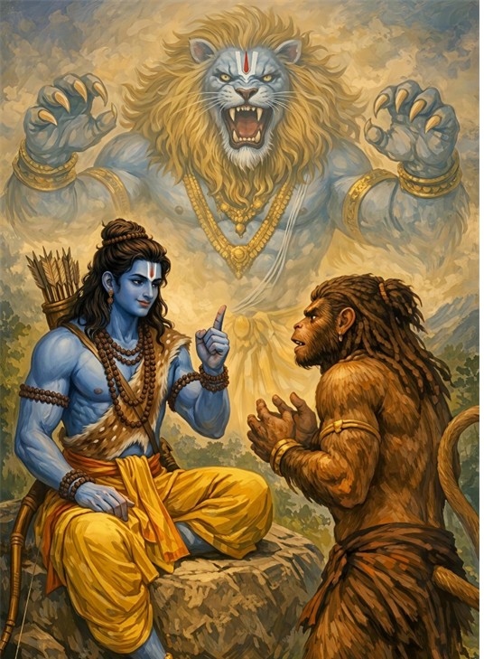 Now go back to the scene where Sugrīva took refuge in Rāma and pay attention to the words he uttered at that time : ‘नृसिंह’ राघव.